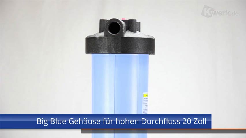 Pentek Wasserfilter BIG BLUE Filtergehäuse in den Ausführungen 20 Zoll, werden insbesondere für große Volumenströme eingesetzt. Die Filtergehäuse Typ Pentek Wasserfilter BIG BLUE, werden zum Schutz von Anlagenkomponenten wie Pumpen, Armaturen und Mess- und Regeltechnik eingesetzt. Sie dienen auch als sog. Vorfilter beim Bezug von Wasser aus Brunnen- und Zisternensystemen, aber auch in Anlagen der klassischen Wasseraufbereitung wie Umkehrosmoseanlagen und Anlagen der Chemie- und Verfahrenstechnik. Das robuste blaue Pentek Wasserfilter Filtergehäuse der BIG BLUE Filtergehäuse besteht aus Polypropylen, die Kappe mit den Anschlüssen Ein- und Ausgang, versehen mit einen Druckentlastung wird in Polypropylen (HFPP) ausgeführt. Die O-Ring Abdichtung ist aus dem Werkstoff BUNA-N. Als Zubehör bei der Installation, hat uns der Hersteller passende Filterschlüssel und Wandhalter zur Verfügung gestellt