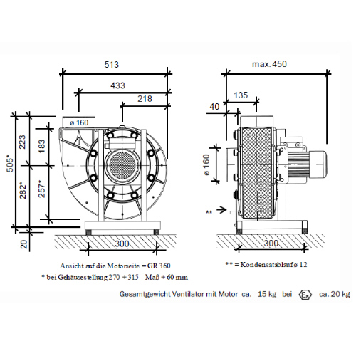 Radialventilator FRv 160/ 4/ L / D/ EX