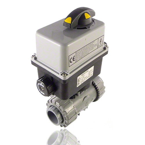 | 3/2-Wege-Kugelhahn aus ABS mit elektrischem Stellantrieb mit Endlagenrückmeldern, Handnotbetätigung und optischer Stellungsanzeige Kugel mit L-Bohrung Standardkugelstellung: 1 Stellantriebsdaten: Standard 90-240V / 50-60Hz (AC) ohne Aufpreis 24V AC/DC Andere Spannungen auf Anfrage ***DN50 = PN16 auf Anfrage Anschluss: Klebemuffe Dichtung: PTFE/EPDM |