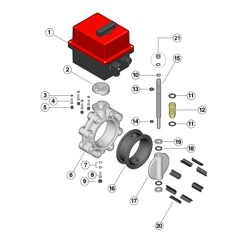 | 2/2-Wege-Absperrklappe mit elektrischem Stellantrieb, Endlagenrückmeldern, Handnotbetätigung und optischer Stellungsanzeige Gehäuse: PVC-U Klappenscheibe: PVC-U Anschluss: Zwischenflanscharmatur Dichtwerkstoff: EPDM Stellantriebsdaten: Standard 90-240V / 50-60Hz (AC) ohne Aufpreis 24V AC/DC Andere Spannungen auf Anfrage DN125 DN200 inklusive Heizwiderstand 10W |