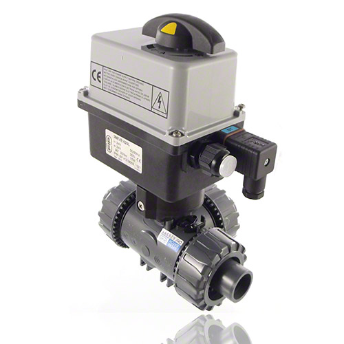 | 3/2-Wege-Kugelhahn aus PVC-U mit elektrischem Stellantrieb mit Endlagenrückmeldern, Handnotbetätigung und optischer Stellungsanzeige Kugel mit L-Bohrung Standardkugelstellung: 1 Stellantriebsdaten: Standard 90-240V / 50-60Hz (AC) ohne Aufpreis 24V AC/DC Andere Spannungen auf Anfrage ***DN50 = PN16 auf Anfrage Anschluss: Klebestutzen Dichtung: PTFE/FPM |