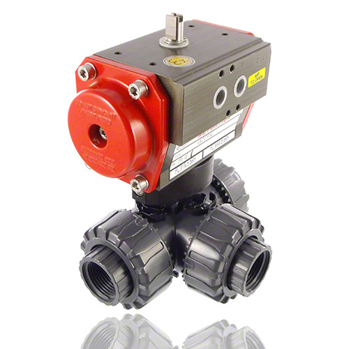 PVC U 3/2-Wege-Kugelhahn , pneumatische Ausführung