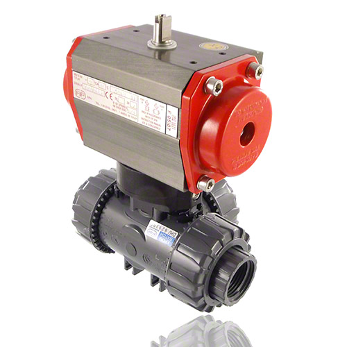 | 3/2-Wege-Kugelhahn aus PVC-U mit pneumatischem Stellantrieb Funktion: doppelt wirkend, inklusive optischer Stellungsanzeige Kugel mit L-Bohrung Standardkugelstellung: 1 Steuerdruck: Standard 5 bar reduzierter Steuerdruck: auf Anfrage Steueranschluß: G 1/8' Namur (DN10 - DN15) G 1/4' Namur (DN20 - DN50) Anschluss: Gewindemuffe Dichtung PTFE/EPDM |