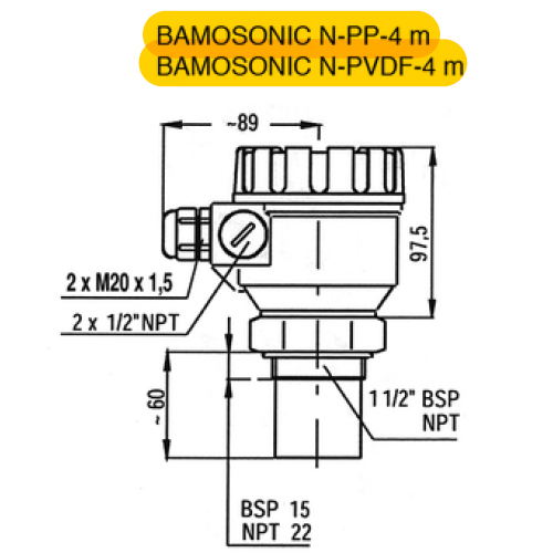 Ultraschall-Füllstandsmessgerät - BAMOSONIC, mit Programmiermodul Ty N-DIS