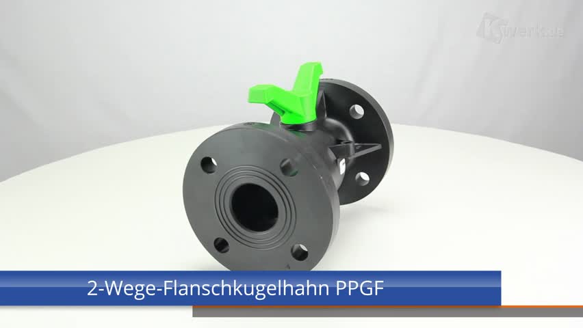 2-Wege-Flanschkugelhahn PPGF, FEP/FFPM = blauer Hebel