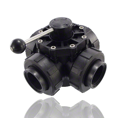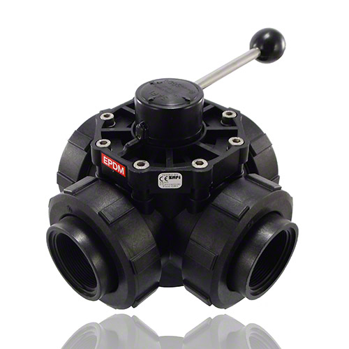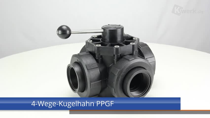 4-Wege-Kugelhahn PPGF DN 50, R-Innengewinde, T-Bohrung, FPM