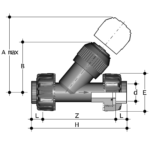 | - Anschluss: PP-LS-Stutzen SDR 11 zum Stumpf- und Heizwendelmuffenschweißen - radial ein- und ausbaubar - Dichtung: FPM |