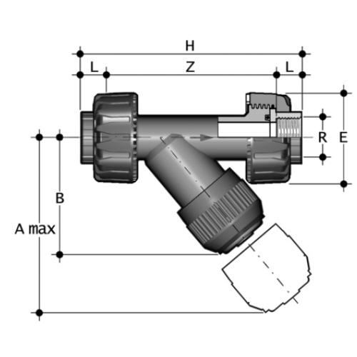 | - Dichtung: EPDM - Anschluss: PE100-LS-Stutzen SDR 11 zum - Heizelementstumpf-und Heizwendelschweißen radial ein- und ausbaubar - eingebautes Filternetz mit Maschenabstand 1,5 mm, Verunreinigung ab 0,5 mm trennbar - Einbau: waagrecht und senkrecht in Leitung - Durchflussrichtung: Siebteil nach unten gerichtet |