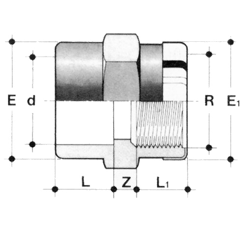 | - Anschluss: Klebemuffe / Gewindeanschluss - einseitig Edelstahlring |