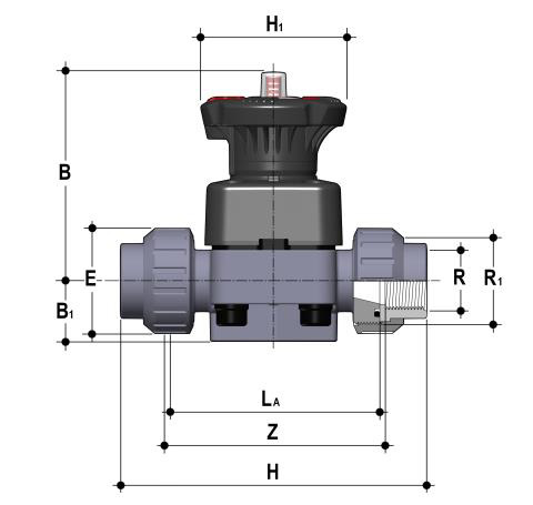 PVC-U Membranventil DK DIALOCK®, Verschraubung mit Gewindemuffe, PTFE Ausführung