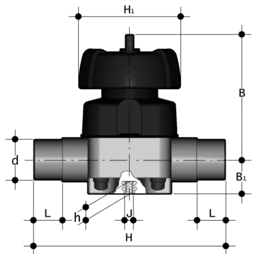 d DN B H H1 L h B1 J PN Gewicht VE Art.-Nr. Artikel bestellen