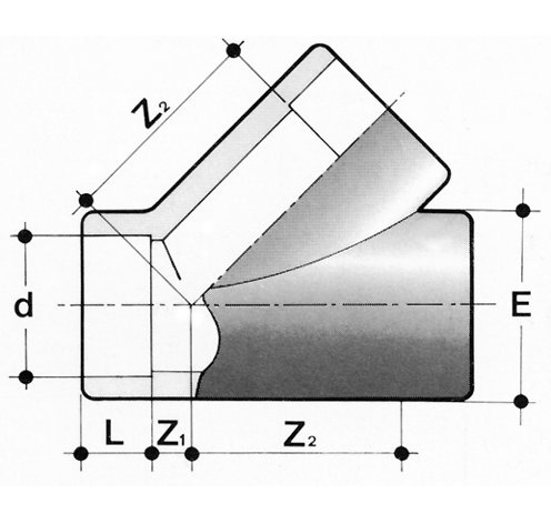 PVC U T-Stück 45°, Klebemuffe