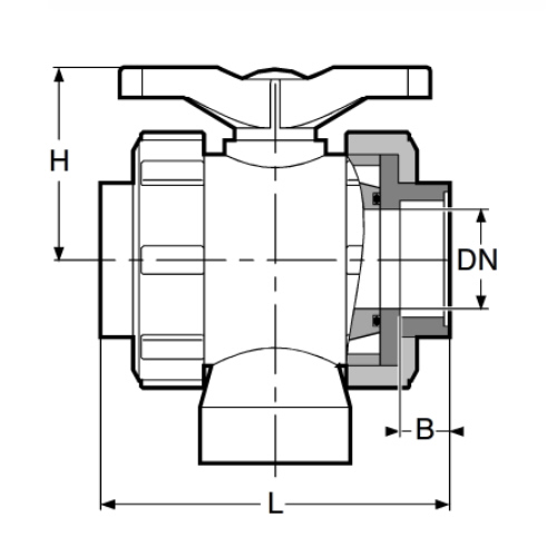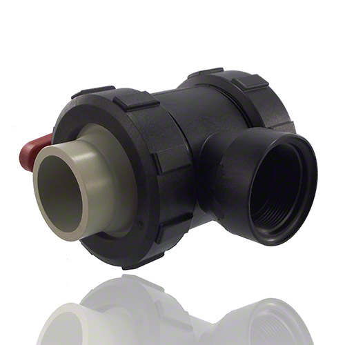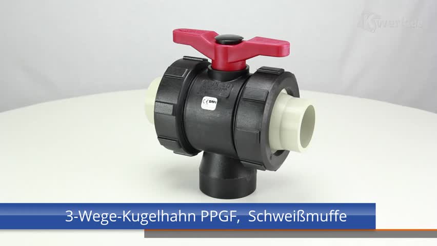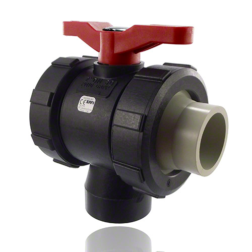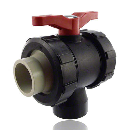 3-Wege-Kugelhahn PPGF, PP-Stutzen, EPDM = roter Hebel