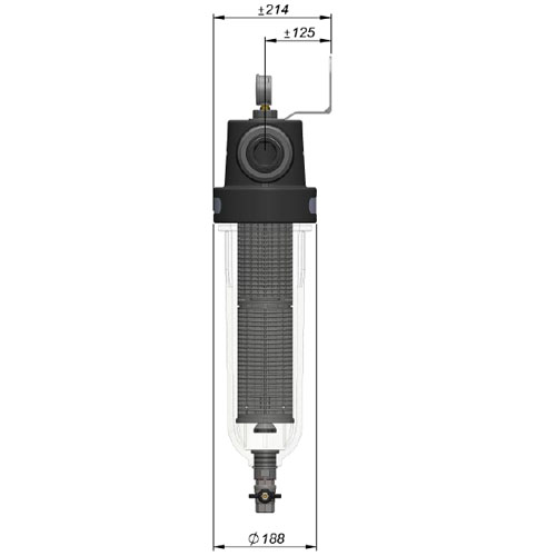 - Einfache und bequeme Entleerung (Ablasskugelhahn am Boden des Gehäuses).