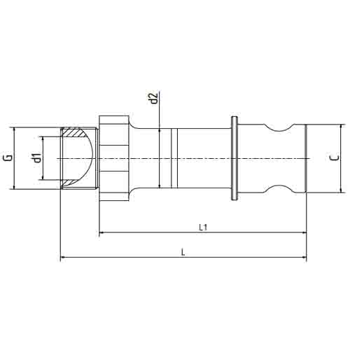 PE-el Gewindenippel mit Camlock-Vaterteil, elektrisch leitfähig, Dichtung FEP-FKM