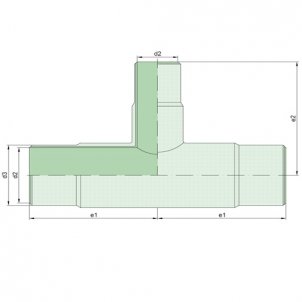 T-STÜCK 90° MIT REDUZIERTEM ABZWEIG AUS UP-GF, FÜR ROHR TYP D |