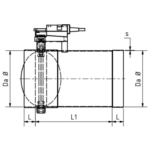 PE  Regelklappe mit Muffen vorgerichtet für Stellmotor, Ausführung 2 mit Anschlag für Klappenblatt
