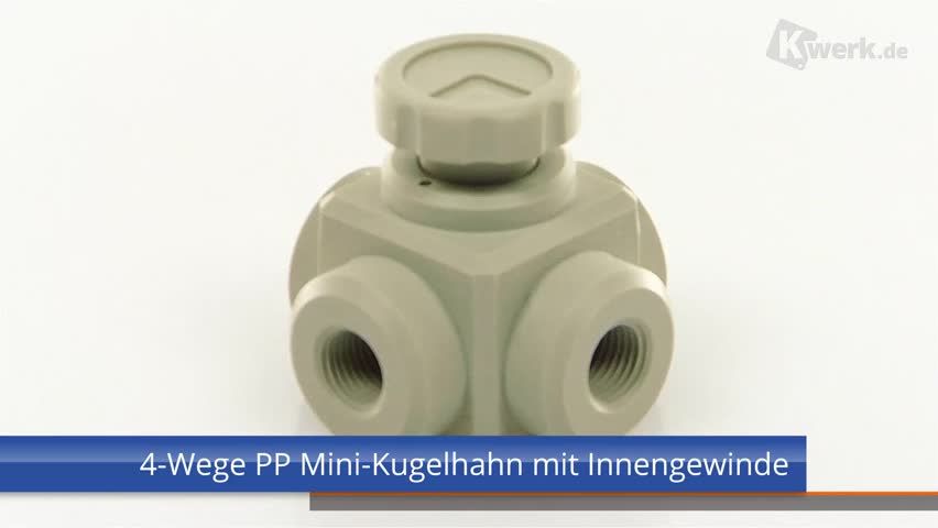 4-Wege PP Mini-Kugelhahn mit Innengewinde - T-Ausführung - |