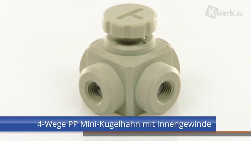 4-Wege PP Mini-Kugelhahn mit Innengewinde - L-Ausführung - |