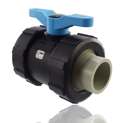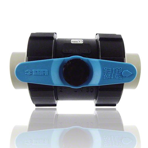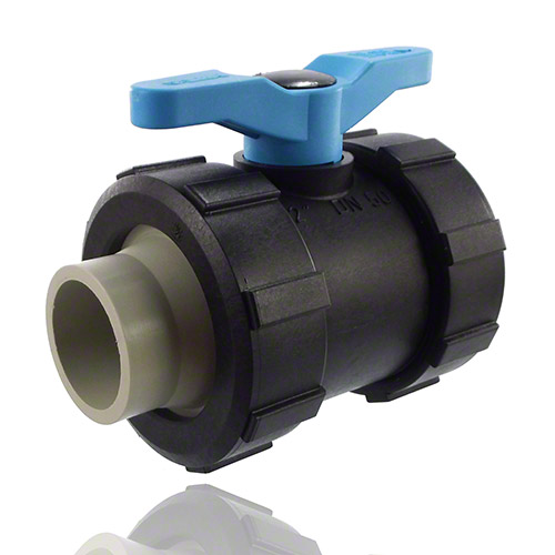 2-Wege-Kugelhahn PPGF, PE-Stutzen, FEP/FFPM = blauer Hebel