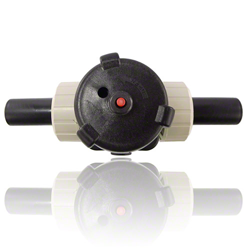 | - Anschluss: mit PE100-LS-Stutzen, SDR 11 zum Heizelementstumpf- und Heizwendelschweißen - Membrane: PTFE - Dichtung in Verschraubung: FPM - mit schwarzem Handrad |