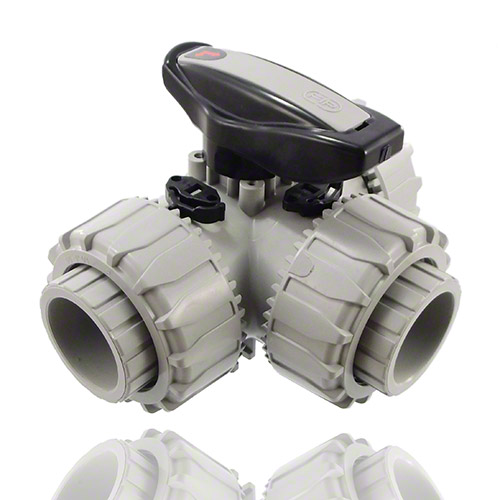 PVC-C 3-Wege-Kugelhahn mit L-Bohrung: Der PVC-C 3-Wege-Kugelhahn mit L-Bohrung bietet die Möglichkeit, den Medienfluss in drei verschiedene Richtungen umzuleiten. Diese Armatur ermöglicht komplexe Flusssteuerungen und ist besonders nützlich in Anwendungen, in denen unterschiedliche Flussmuster erforderlich sind.