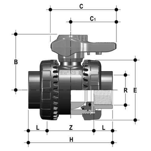 PVC-U Kugelhahn VXE, Gewindemuffe, EPDM