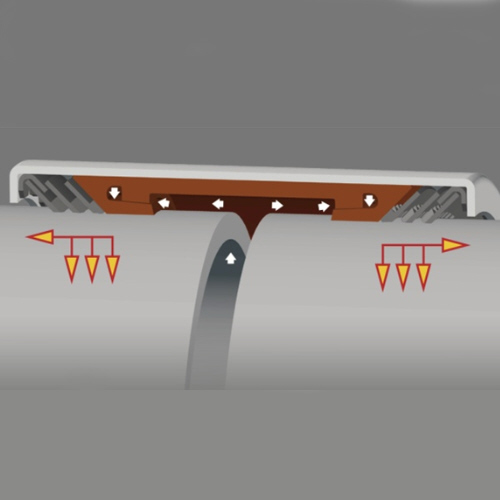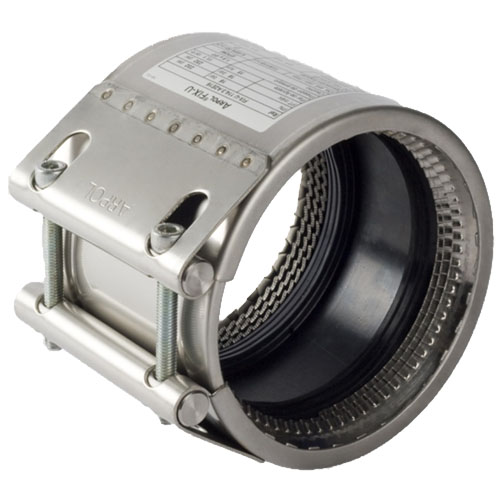 Flexible Edelstahl Rohrkupplung mit axialer Verankerung zur Verbindung von Rohren aus PVC U und PE.